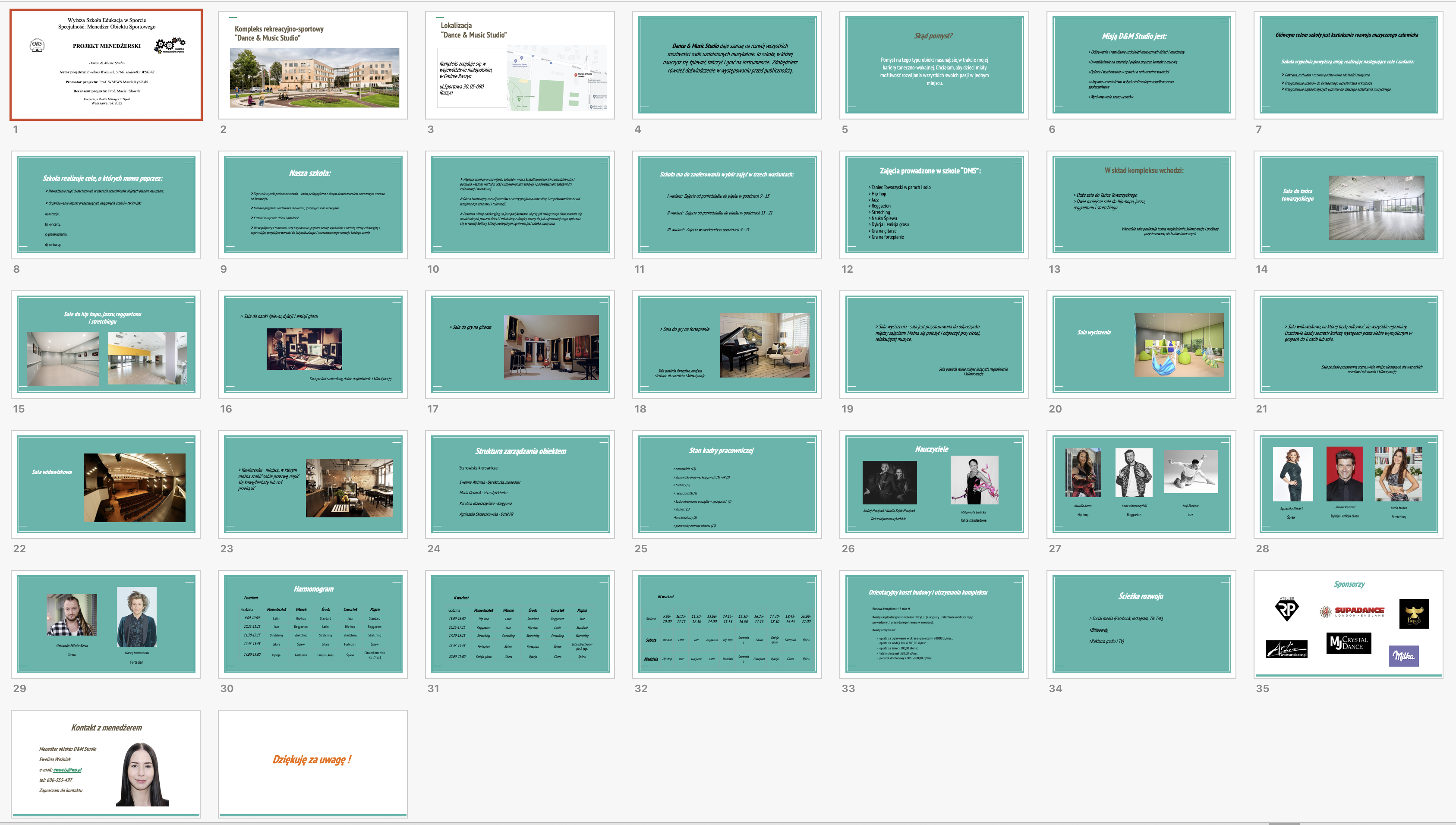 Poniższe projekty były wykonane w roku akademickim 2021/2022 - wówczas obowiązywały inne kryteria opracowania projektów: mniejsza liczba slajdów, inna strona tytułowa, inny slajd - kontaktu z menedżerem) nie mniej są to projekty z których można brak przykład opracowania poszczególnych tematów oraz strony graficznej projektu.