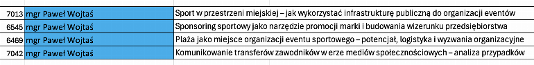 Przydział promotorów projektów dla studentów III roku EWS - Menedżer Obiektu Sportowego - III rok 2025/2026
