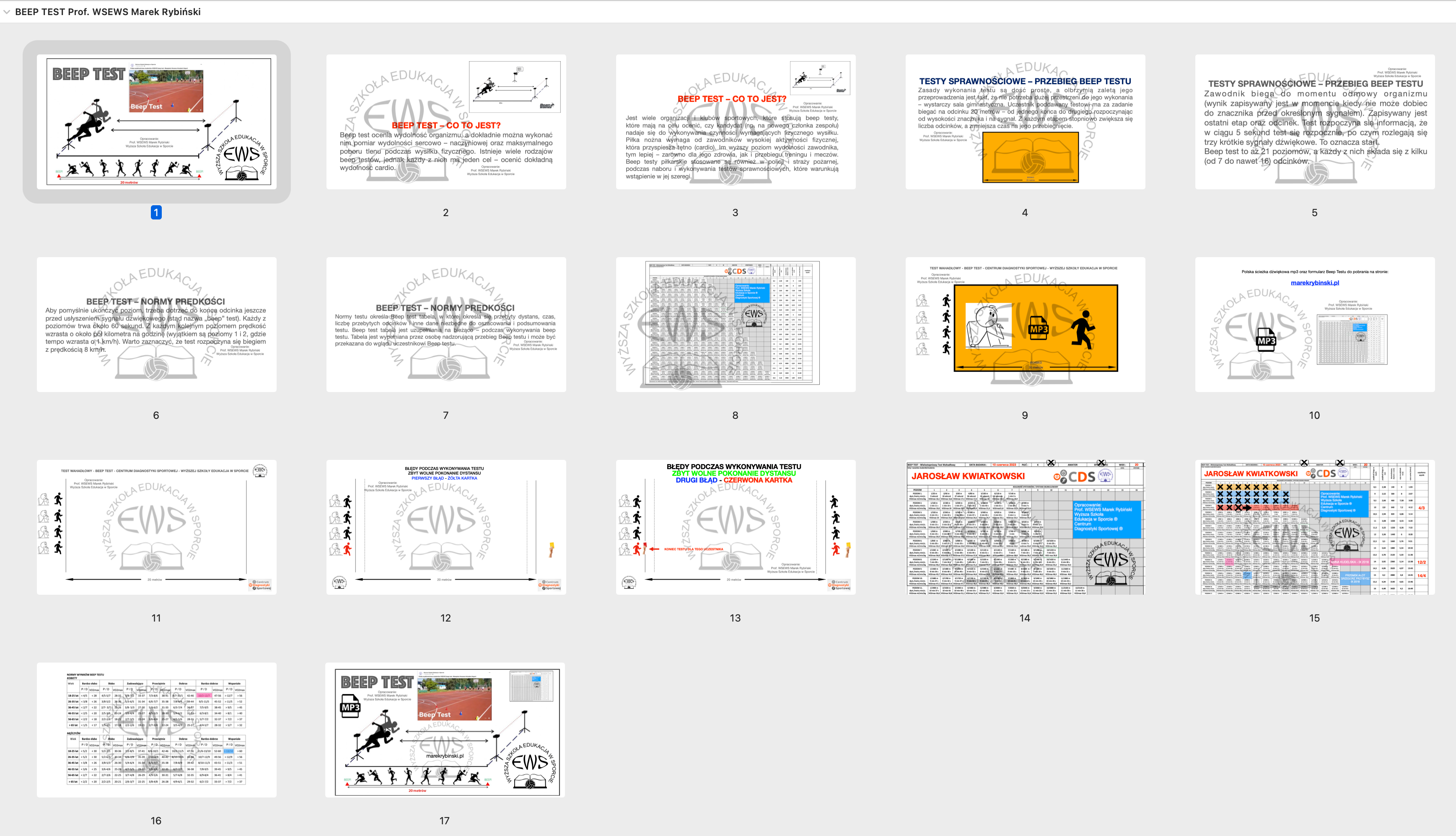 W/w arkusze są własnością Wyższej Szkoły Edukacja w Sporcie. Ścieżka dźwiękowa BEEP TESTU jest własnością autora Prof. WSEWS Marka Rybińskiego.
